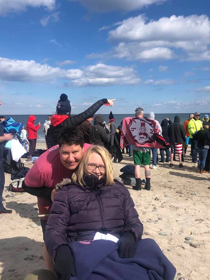 As we were waiting to go down to the water for the plunge, I got the shock of my life when I looked up to see an old friend of mine walking toward us in the parking lot. Tracee lives in New Jersey now with her husband. She happened to be in MA this weekend and she made a point of stopping by to see us, which was just amazing! It was an awesome surprise and I’m glad we got to catch up after all these years.