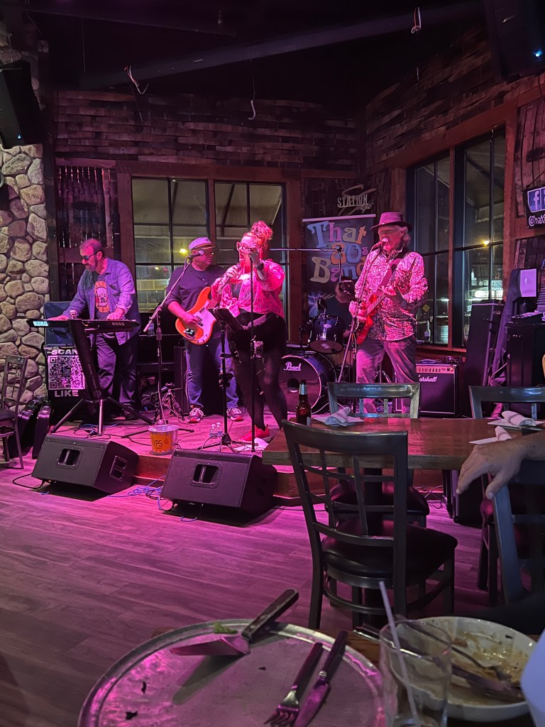 Aaron and I went out with friends last night to see an 80s band at a great place in Marshfield called Station Eight. We’d discovered this bar for the first time after a group of us from ALS One went there after the Tucker Toss. I loved it instantly because it was incredibly accessible and that is not something that is particularly easy to come by. It was easy to access from the parking lot and once inside, there was ample room for me to navigate through in my wheelchair without worrying about running into things or people. And probably the best part was the fully separate and accessible bathroom. It doesn’t sound like much, but trust me, it’s a big deal.