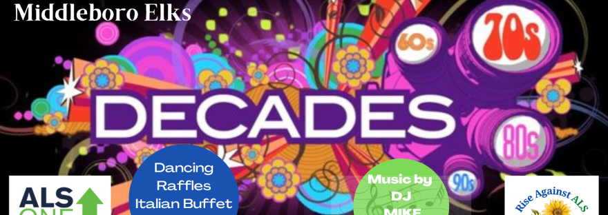 Our 4th annual Rise Against ALS Through the Decades Dance Party for ALS One will be held on Saturday, September 30th at 7:00 at the Middleboro Elks! Tickets are on sale now and can be purchased here. As always, 100% of the proceeds go directly to ALS One to support critical ALS research and help… Continue reading Through the Decades Dance Party